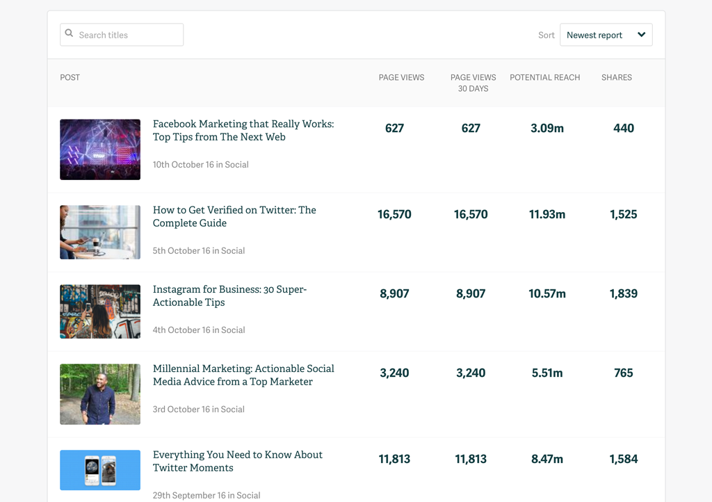 Postreach is my new favorite marketing tool. It does all the work for me, and lets me see how my blog content and guest posts are doing in a simple interface.