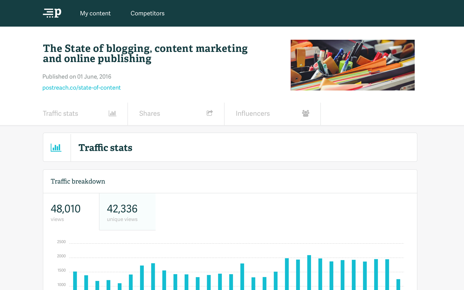 PostReach makes it super-simple to analyze our content marketing efforts. It’s a great tool to measure content I publish and everything our competitor's produce. Getting insight on “who” shares content is invaluable.